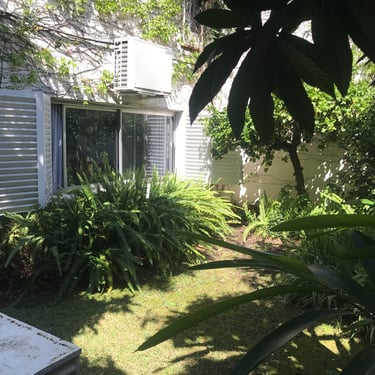 Amplio comedor con vista al jardín de la residencia climatizado con aire acondicionado.